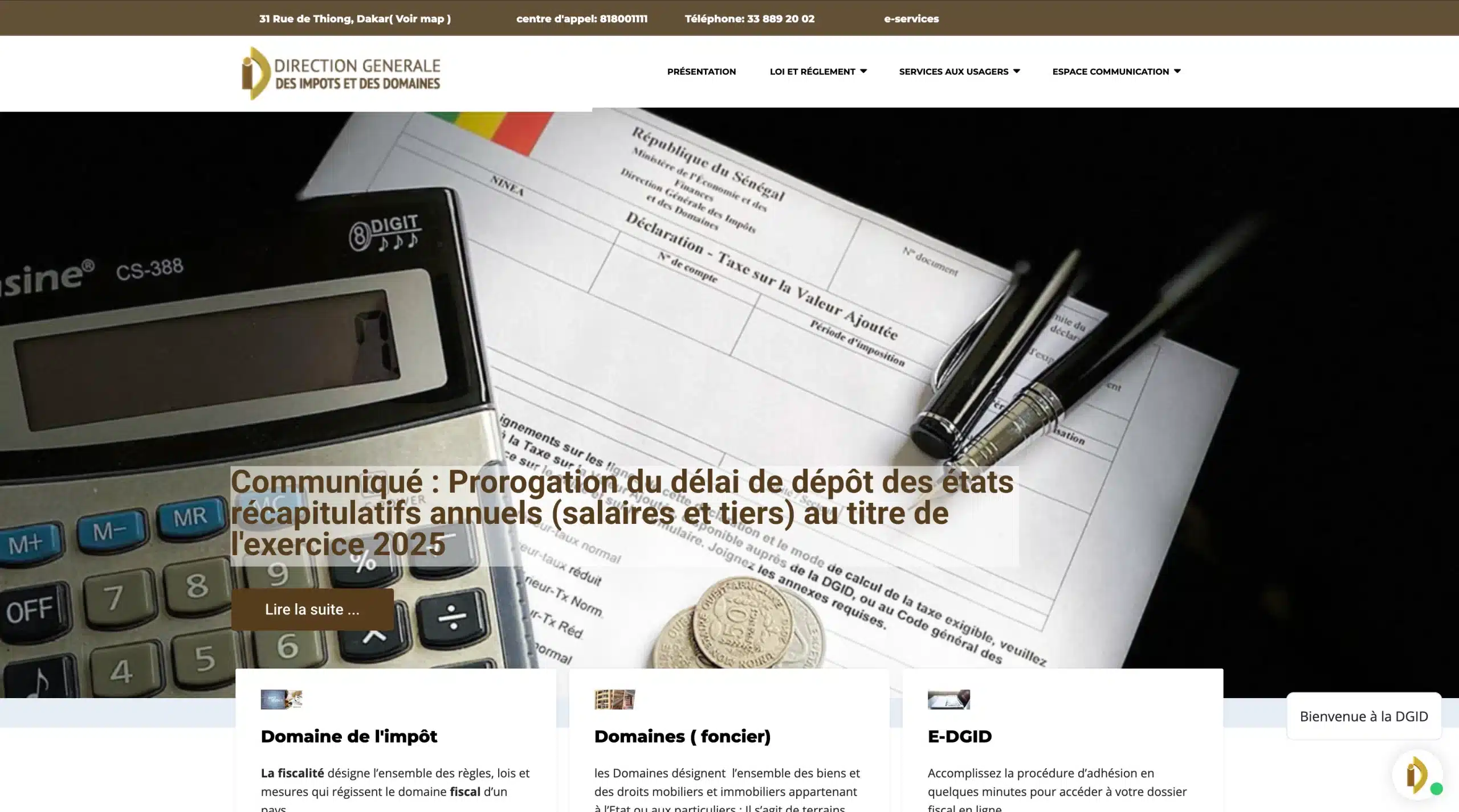 La Direction générale des Impôts et des Domaines est un service du Ministère des Finances et du Budget, maître d’oeuvre des politiques fiscales et foncières (domaine et cadastre).